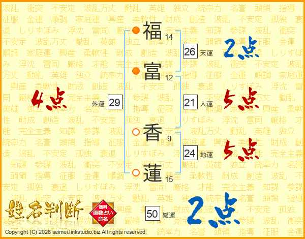 福富香蓮さんの天運は26画の2点!