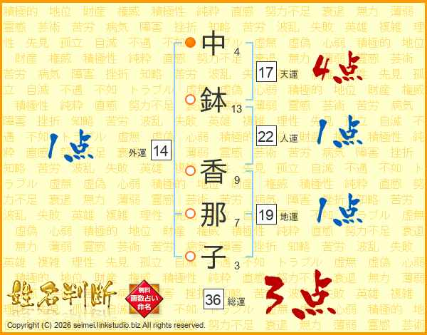 中鉢香那子さんの天運は17画の4点!