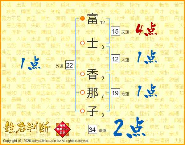 富士香那子さんの総運は34画の2点!