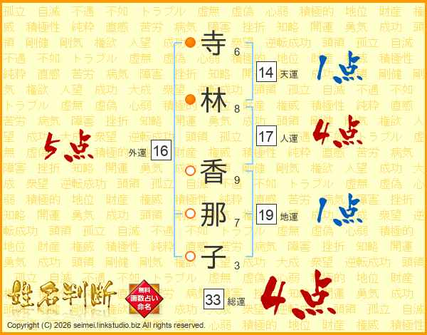 寺林香那子さんの総運は33画の4点!