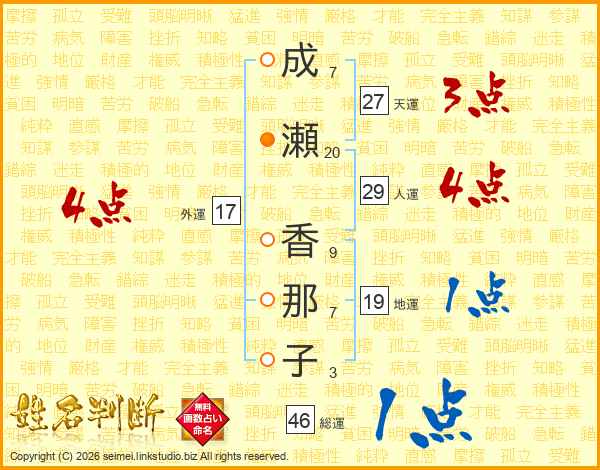 成瀬香那子さんの総運は46画の1点!