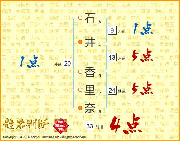 石井香里奈さんの総運は33画の4点!