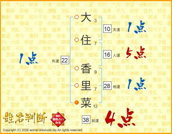 大住香里菜さんの総運は38画の4点!