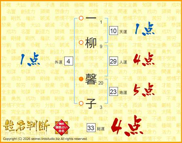 一柳馨子さんの総運は33画の4点!