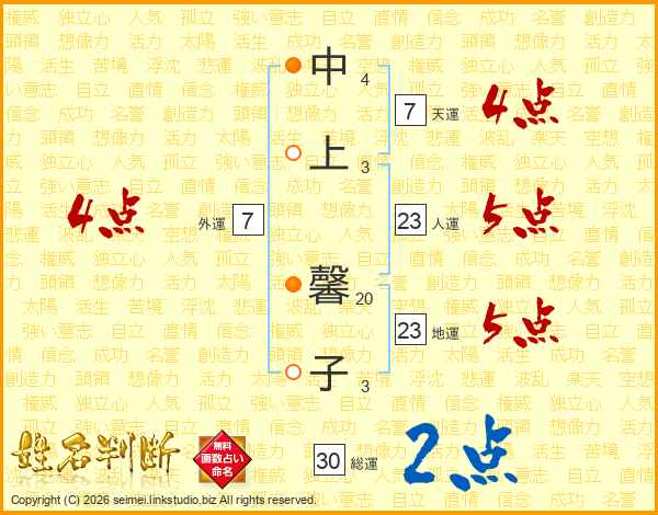 中上馨子さんの総運は30画の2点!