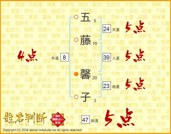 五藤馨子さんの総運は47画の5点!