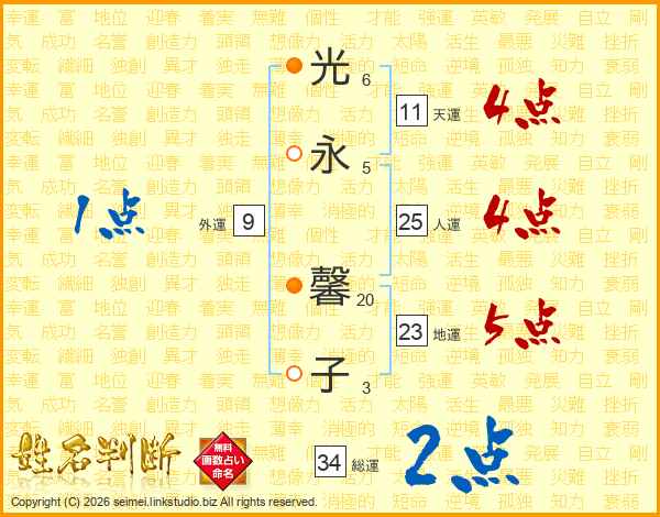 光永馨子さんの天運は11画の4点!