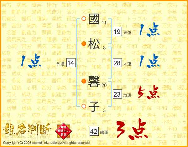 國(11画)松(8画) 馨(20画)子(3画)