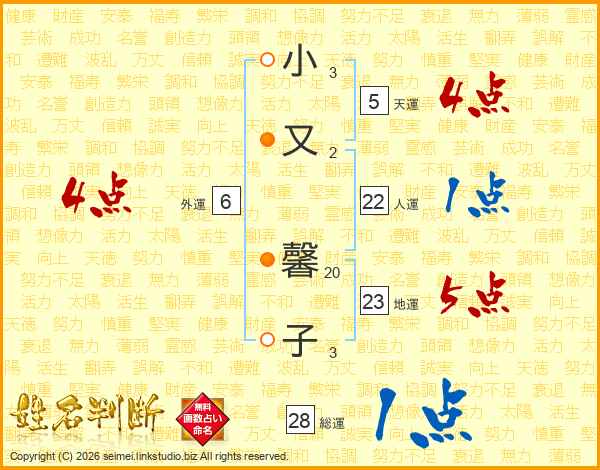 小又馨子さんの総運は28画の1点!