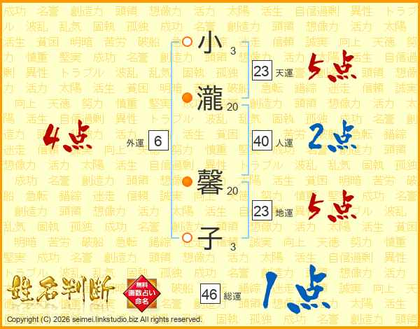 小瀧馨子さんの総運は46画の1点!