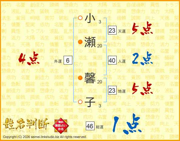 小瀬馨子さんの総運は46画の1点!
