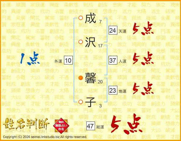 成沢馨子さんの総運は47画の5点!