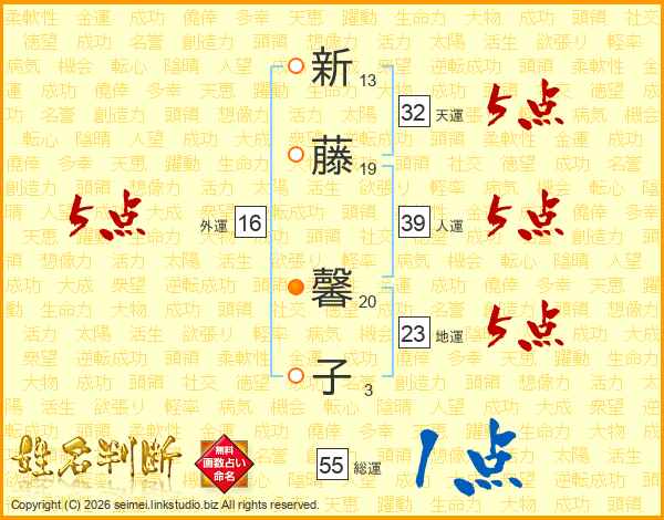 新藤馨子さんの天運は32画の5点!