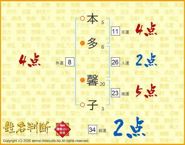 本多馨子さんの人運は26画の2点!