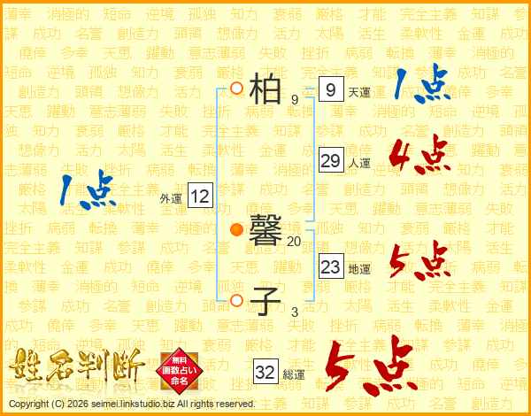 柏馨子さんの総運は32画の5点!