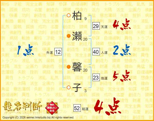 柏瀬馨子さんの総運は52画の4点!