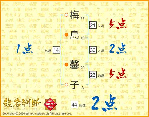 梅(11画)島(10画) 馨(20画)子(3画)