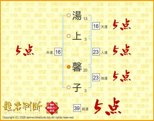 湯上馨子さんの総運は39画の5点!