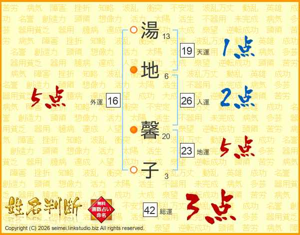 湯(13画)地(6画) 馨(20画)子(3画)