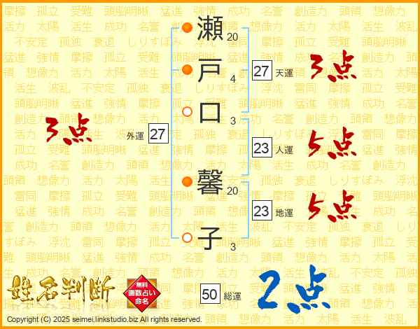 瀬(20画)戸(4画)口(3画) 馨(20画)子(3画)