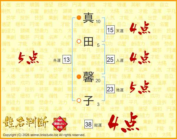 真田馨子さんの総運は38画の4点!