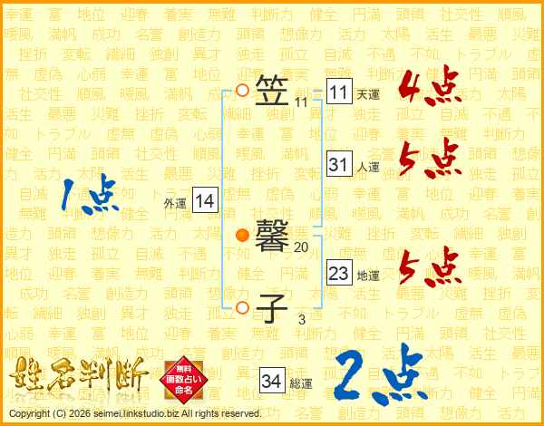 笠馨子さんの外運は14画の1点!