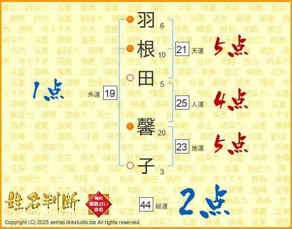 羽根田馨子さんの天運は21画の5点!