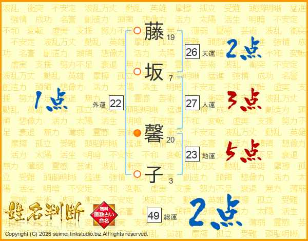 藤(19画)坂(7画) 馨(20画)子(3画)