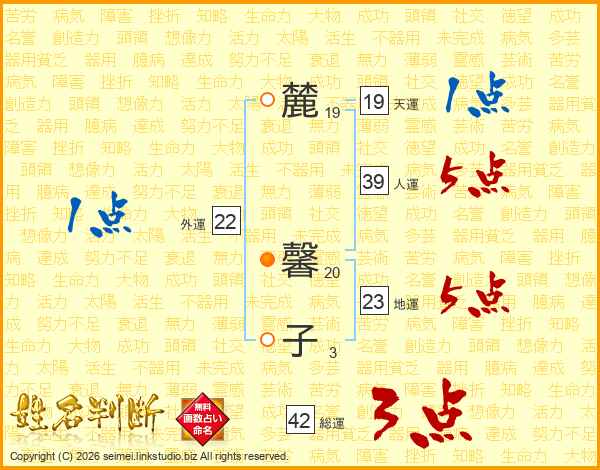 麓馨子さんの人運は39画の5点!