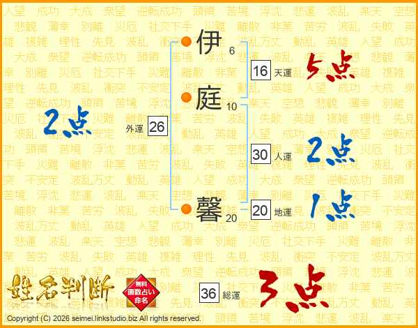 伊庭馨さんの総運は36画の3点!
