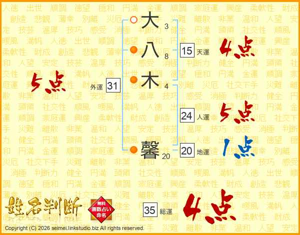 大八木馨さんの総運は35画の4点!