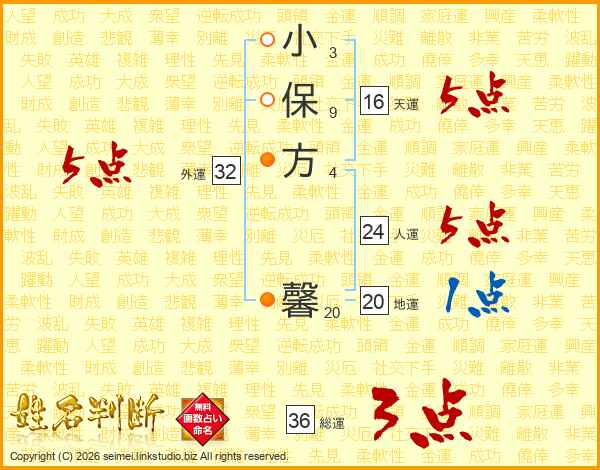 小保方馨さんの外運は32画の5点!