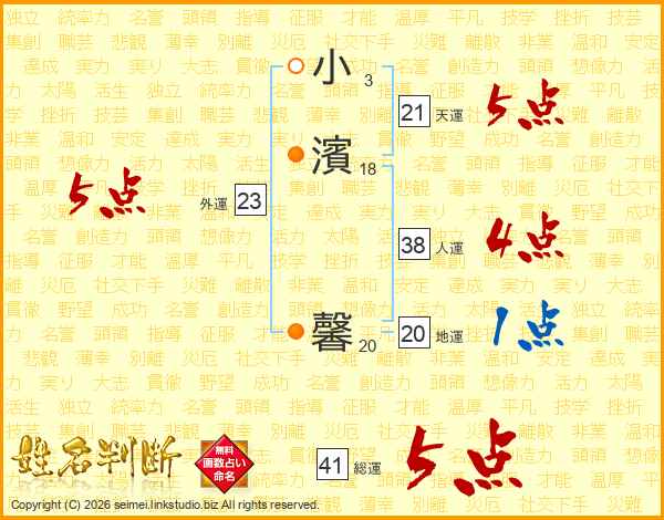 小濱馨さんの総運は41画の5点!
