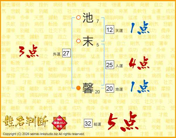 池末馨さんの総運は32画の5点!