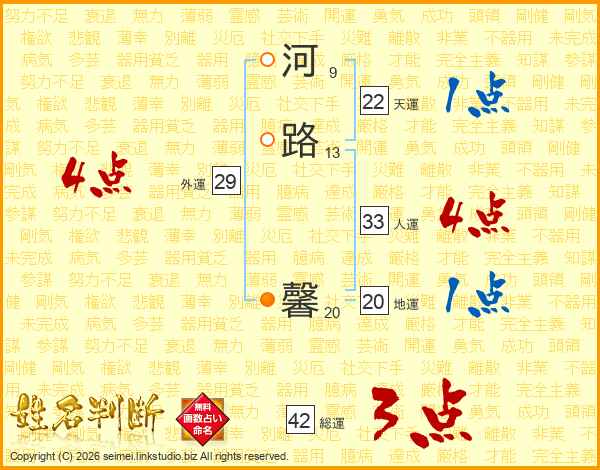 河路馨さんの人運は33画の4点!