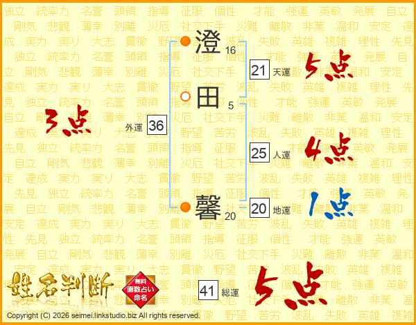 澄(16画)田(5画) 馨(20画)
