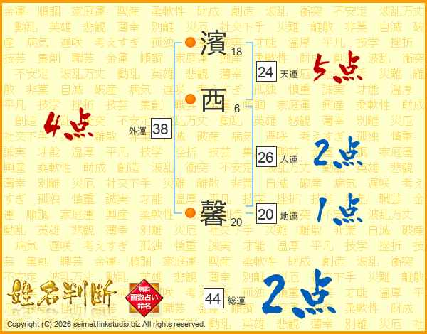 濱西馨さんの総運は44画の2点!