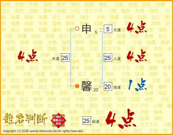 申馨さんの総運は25画の4点!