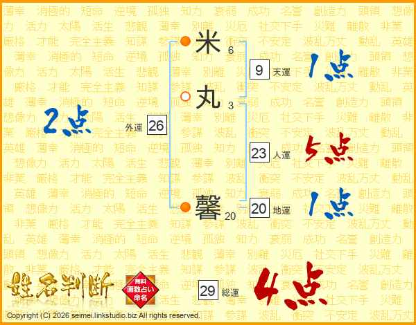 米丸馨さんの総運は29画の4点!