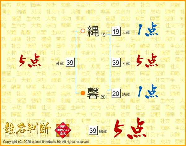 縄馨さんの外運は39画の5点!