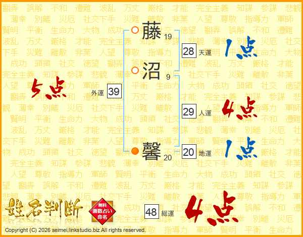 藤沼馨さんの外運は39画の5点!