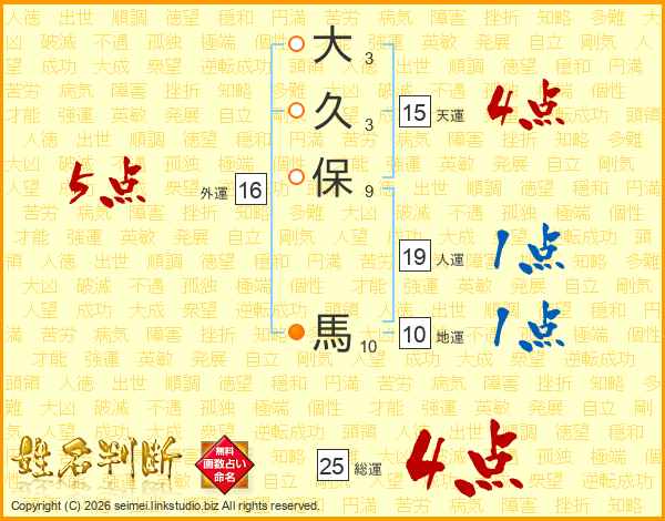 大久保馬さんの総運は25画の4点!