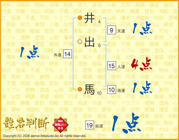 井出馬さんの総運は19画の1点!
