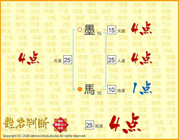 墨馬さんの総運は25画の4点!