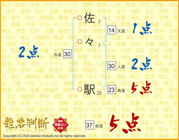 佐々駅さんの総運は37画の5点!