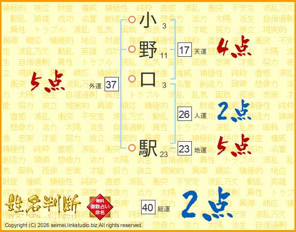 小野口駅さんの人運は26画の2点!