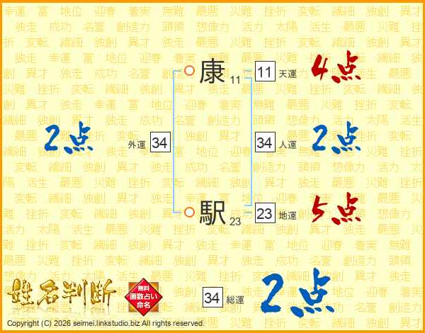 康駅さんの人運は34画の2点!