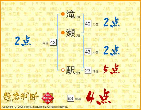 滝瀬駅さんの総運は63画の4点!