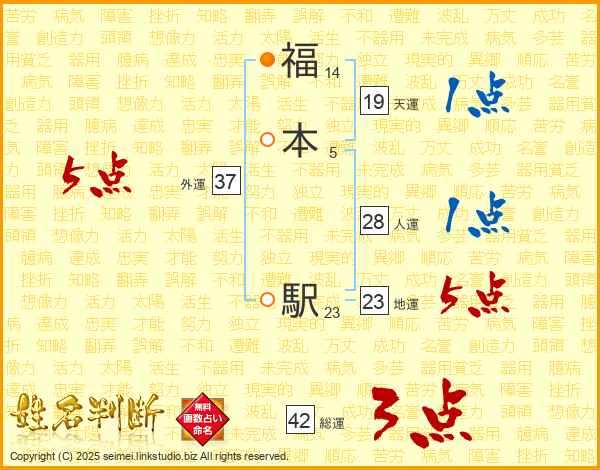 福本駅さんの人運は28画の1点!