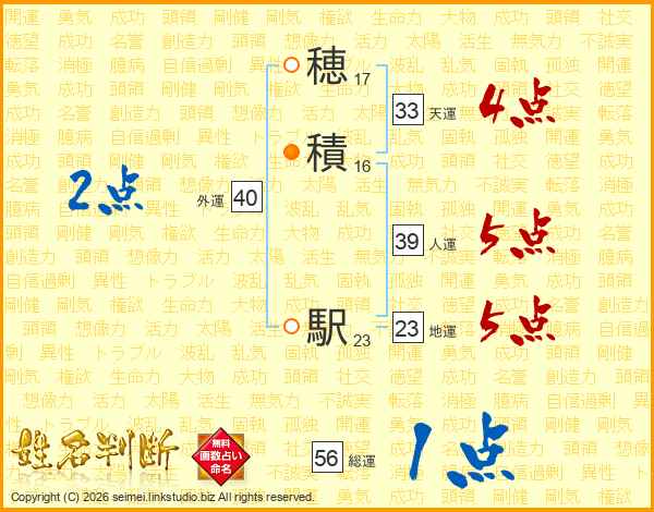 穂積駅さんの人運は39画の5点!